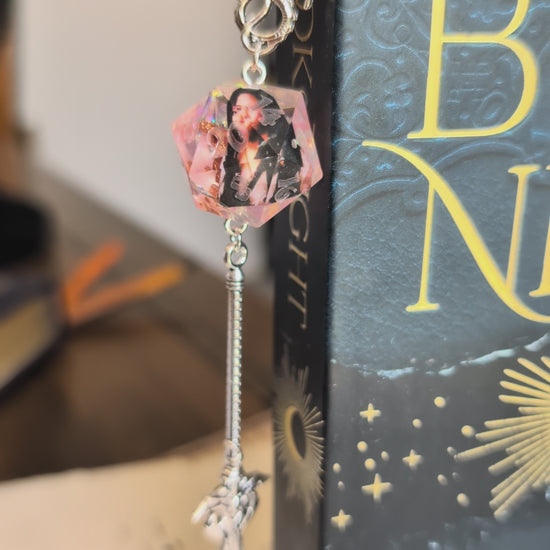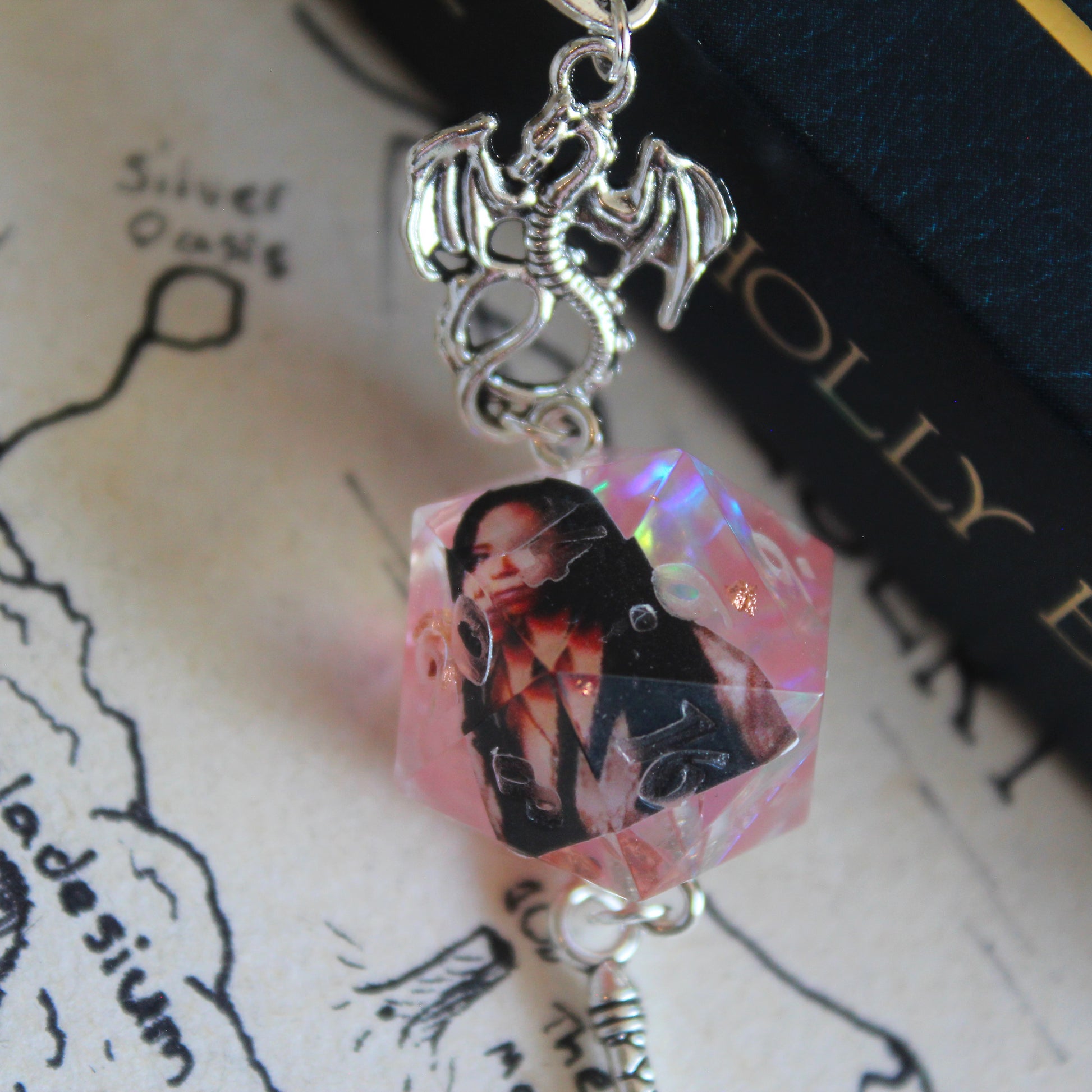 Aabria Iyengar in Pink Metal Bookmark with Dice