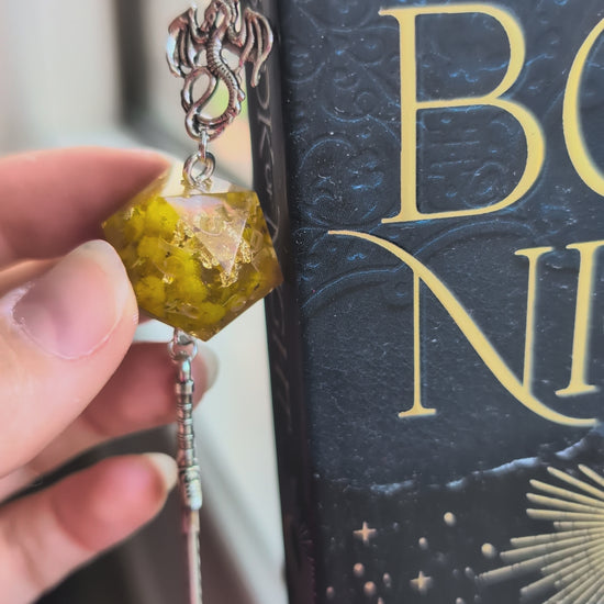 Enchanted Feather Metal Bookmark with Dice