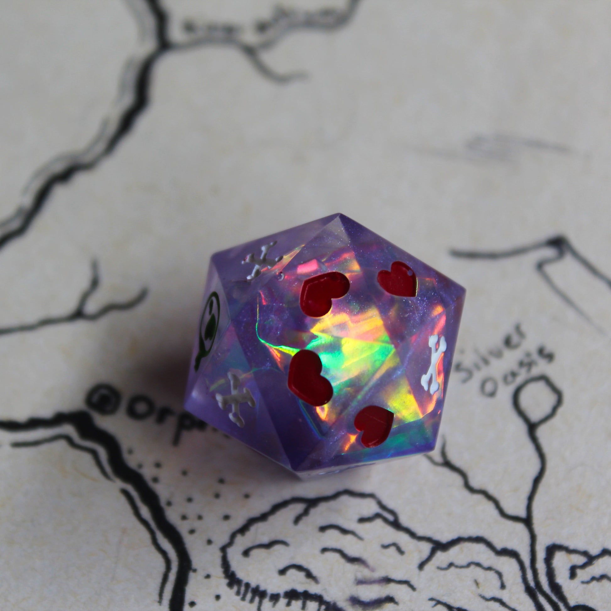 It features a gravestone of critical failure for #1, skulls for #2-9, hearts for #10-19, and a potion bottle for #20.