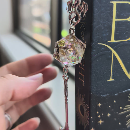Enchanted Feather Metal Bookmark with Dice