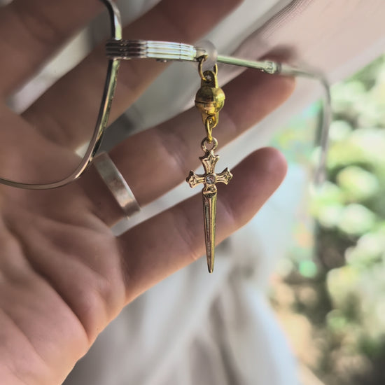 Gold swords with a handle and a smooth blade in a medieval style with a gem.