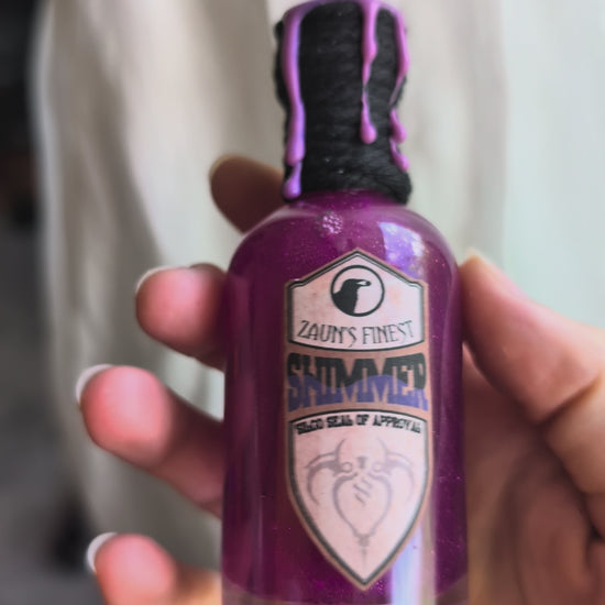 This potion was inspired by Arcane. It features pink and purple in bright shades of roses and lavender. When shaken, sparkles appear!