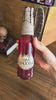 Water, glitter, colourants, red foil flake, and some good old magic. Silver chain on the outside.